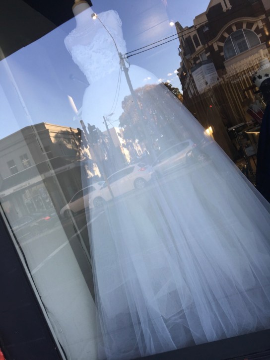 During that time I became aware of the wedding dress shops in Leichardt on Parramatta Road, the cluster of hope and glamour, in the grind and bump of the busy streetscape. I glimpsed them from the bus. Lingered as I walked past. Took photos. I wrote a piece for Little Fictions that was later performed at the Knox St Bar in Chippendale by Joel Douglas.