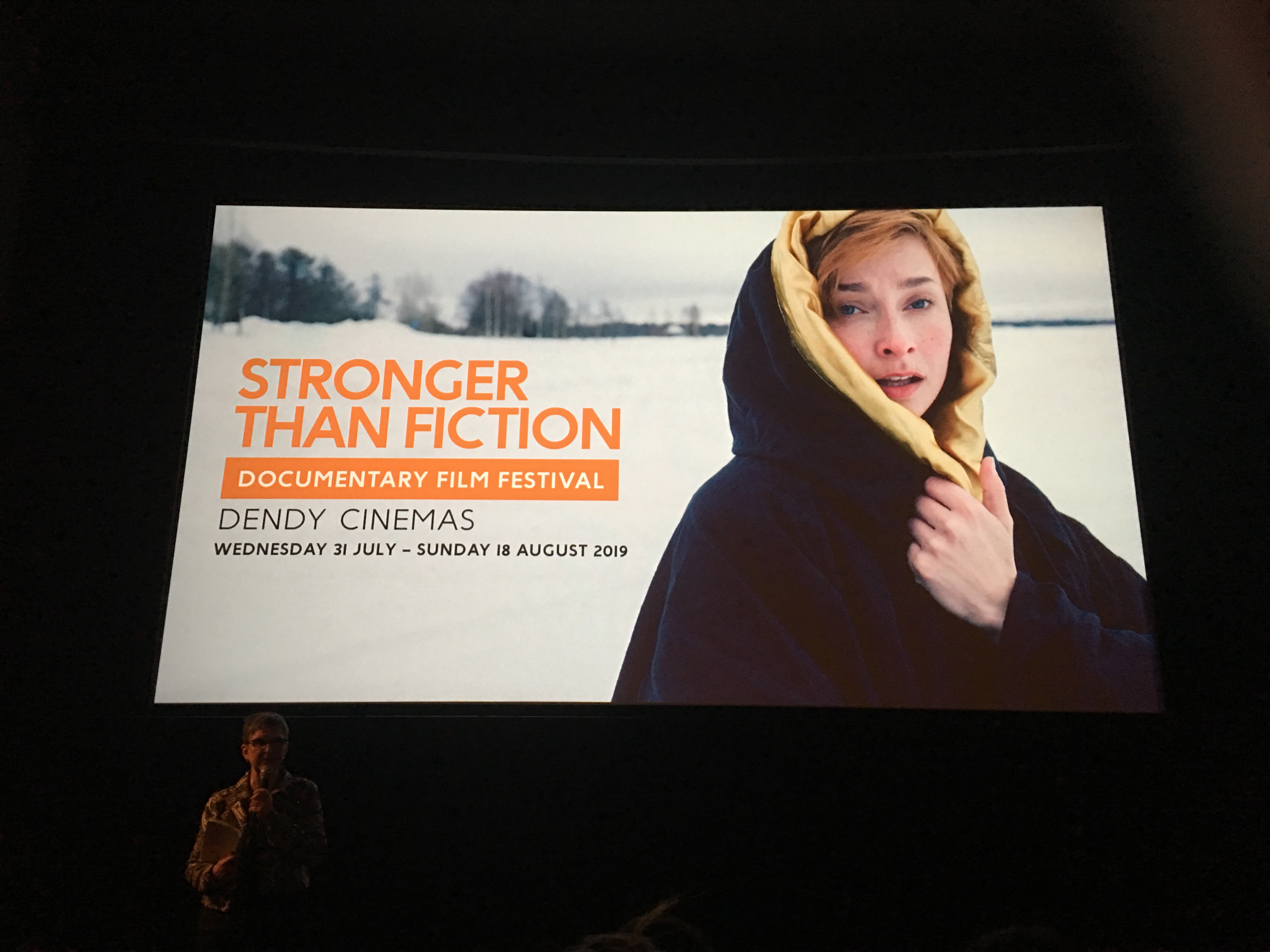 Deborah Kingsland, Stronger than Fiction Director, introducing the festival (the image behind her is from ‘The Magical Life of V’)